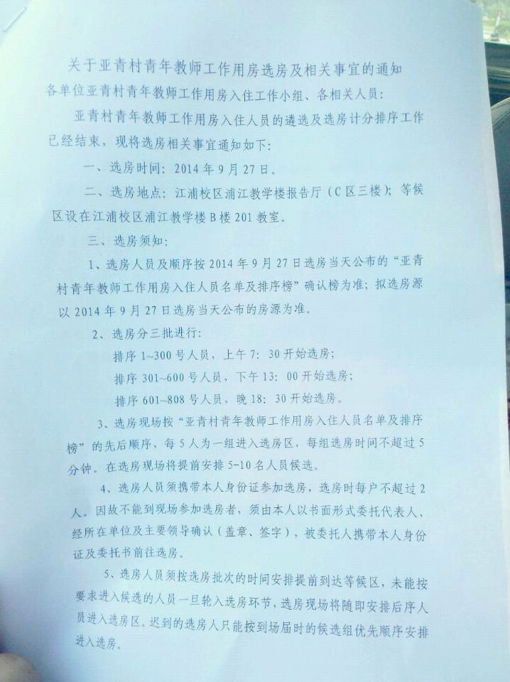 亚青村分房事宜