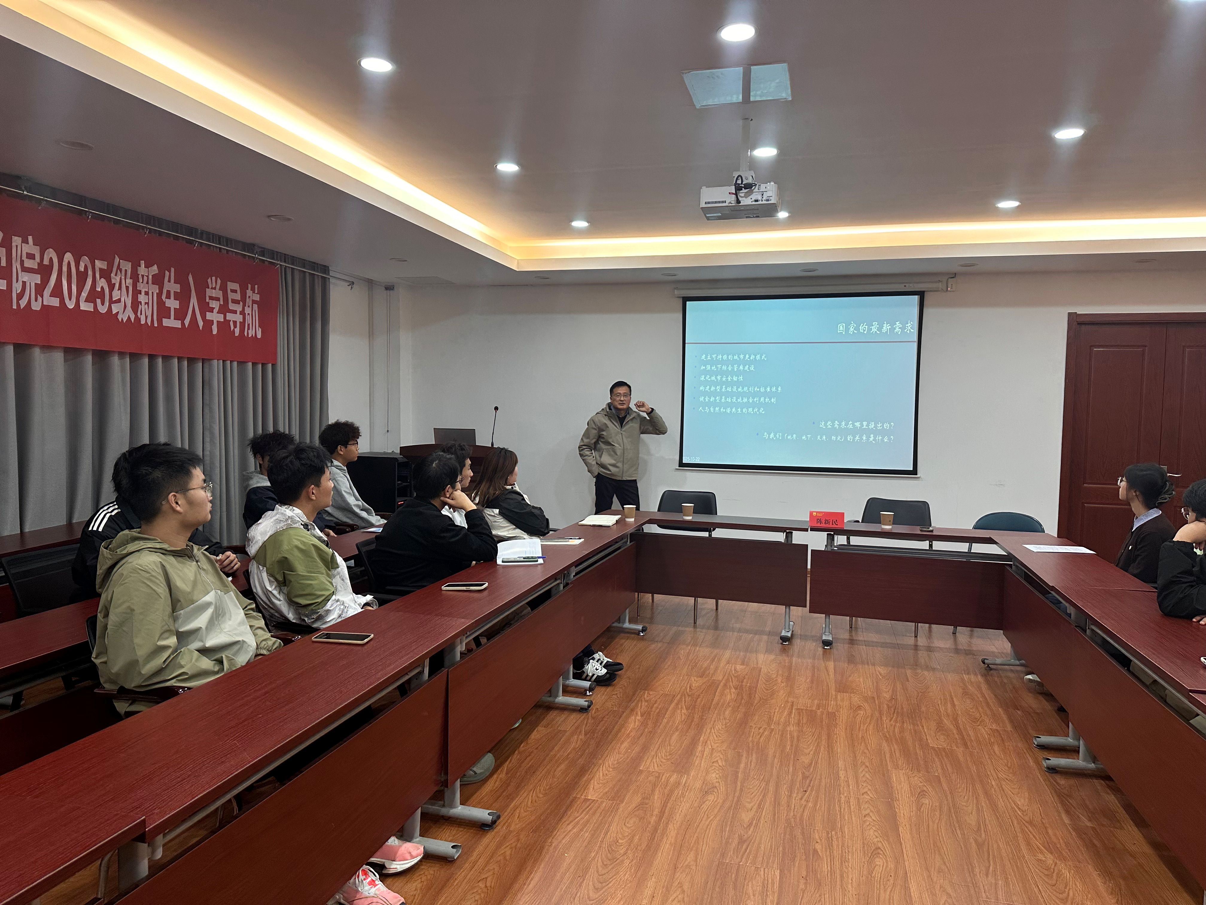 陈新民教授首先带领同学们回顾学校、学院及专业的发展历程,强调大学生应主动对接国家战略需求,积极适应数智时代学习模式的转变,不断拓宽认知边界,掌握高阶知识能力。在随后的交流环节中,同学们围绕专业认知、行业前景、学业规划、科研创新与就业选择等方面踊跃提问。陈教授耐心倾听、细致解答,并结合实际为同学们提供了切实可行的建议,现场气氛热烈,互动频频。与会新生纷纷表示收获颇丰,对未来的大学生活充满信心。