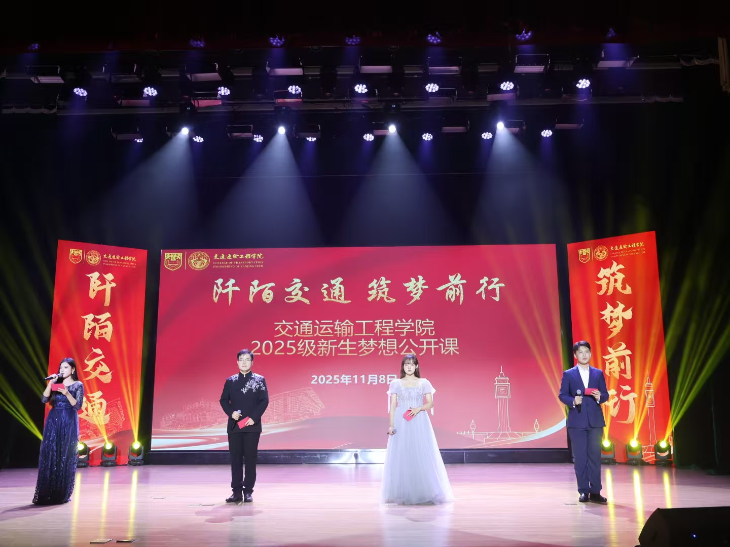 11月8日,交通运输工程学院2025年“阡陌交通 筑梦前行”梦想公开课在博雅堂隆重举行。学校学生工作处副处长张杰,学院院长周峰,党委副书记刘全振,副院长高洪梅,院长助理刘恒,校友代表、教授代表、各系主任、两办老师及全体2025级本研新生参加本次梦想公开课。