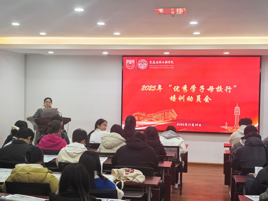 为扎实开展本年度“优秀学子母校行”活动,11月19日下午,交通学院于天工楼530召开2025年“优秀学子母校行”培训动员会。 “优秀学子母校行”团队本研学生代表参加了本次培训动员会。会议由团委副书记李秋伊主持。