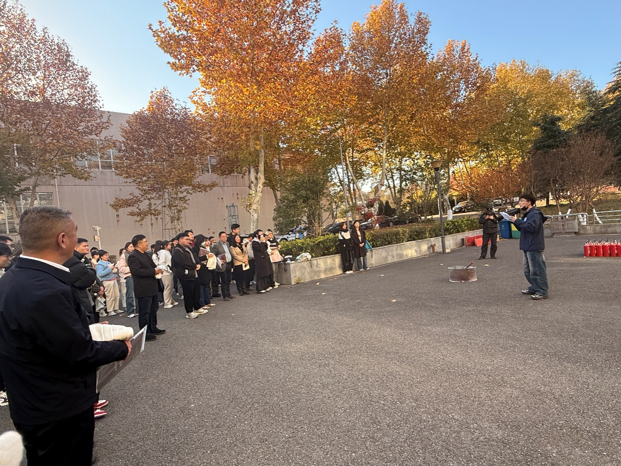 11月25日下午,在南京工业大学实验室建设与管理处、保卫处的联合指导下,由交通运输工程学院、城市建设学院、测绘科学与技术学院、土木工程学院、安全科学与工程学院及材料科学与工程学院共同举办的“六院联合安全专题会议暨消防应急演练活动”在土木学院立德楼报告厅及其前广场成功举行。交通运输工程学院党委书记许翠梅、安全科学与工程学院党委书记郑娟、材料科学与工程学院党委书记高树军、城市建设学院党委书记段然堂、土木工程学院副院长杨会峰、保卫处刘世伟科长、实验室建设与管理处李强科长,以及六院相关教师、实验室管理人员、学生共计160余人参加了本次活动。