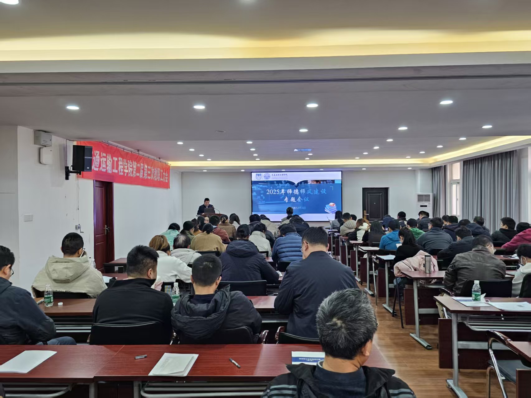 为强化教师思想政治素质和师德师风修养,筑牢立德树人根基,2025年12月3日,交通运输工程学院以“学准则明底线 修师德践初心”为主题召开专题会议。学院领导班子及全体教职工参会,党委副书记刘全振主持。
