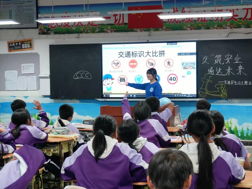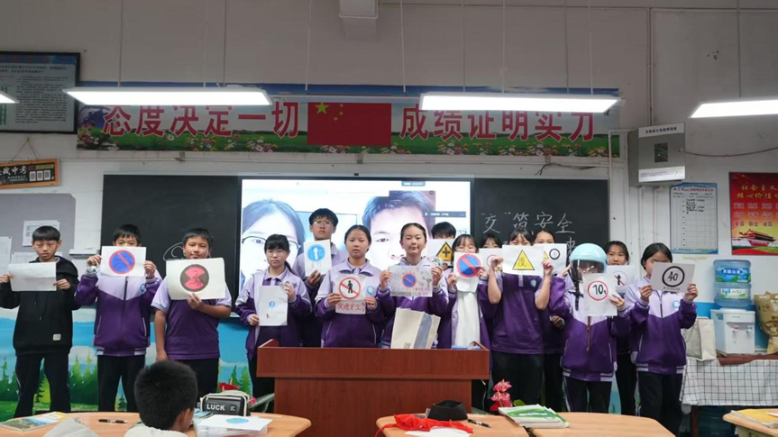 课堂上,交通工程专业于锐宏、李丽珠同学通过详实的数据,揭示了当前交通安全的严峻形势和违反交通规范的危害,让同学们深刻认识到安全出行的重要性。并通过真实案例,围绕校外出行、车辆盲区、骑行规范等核心知识点展开讲解。干货满满、贴近生活,有效强化了同学们规范出行的安全意识。随后的知识抢答、交通标识大比拼、手工绘制交通标志等趣味互动环节点燃了同学们的参与热情,大家踊跃答题、积极展示,在轻松氛围中巩固了交通法规和安全常识。